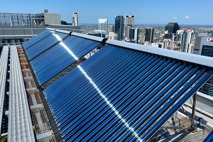 Forced Circulation Systems find application in commercial industries. In these systems, the collectors and tanks are split with pumps with the aid of an intelligent solar controller, which operates the system optimally. These are commonly available in 200 to 5000 liter capacities but larger options are also possible. Talk to us for more details.